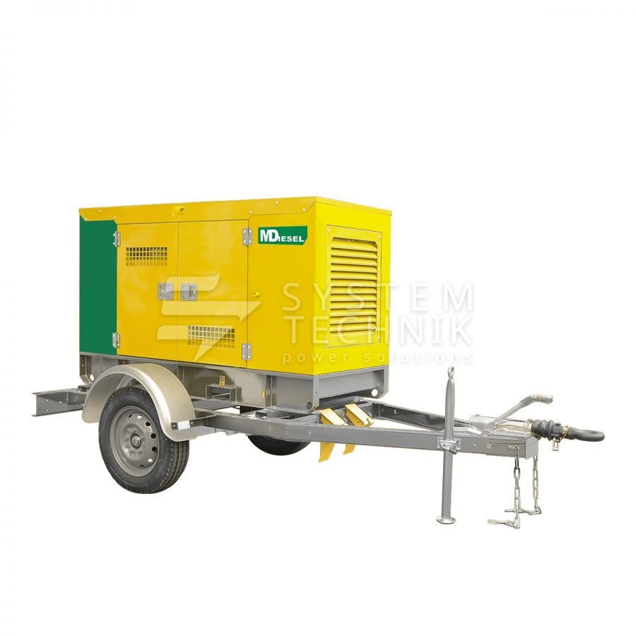Дизельный генератор MitsuDiesel МД ЭД-50-Т400-1РКМ29 в шумозащитном кожухе на шасси на прицепе в Троицке
